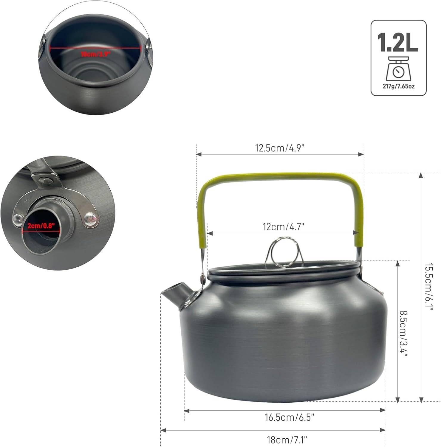 • Rapid Heat Conduction:The design of the energy gathering ring at the bottom of the camping teapot increases the heating area at the bottom of the teapot to shortening the time it takes for water to boil, so you can enjoy your coffee or tea faster!