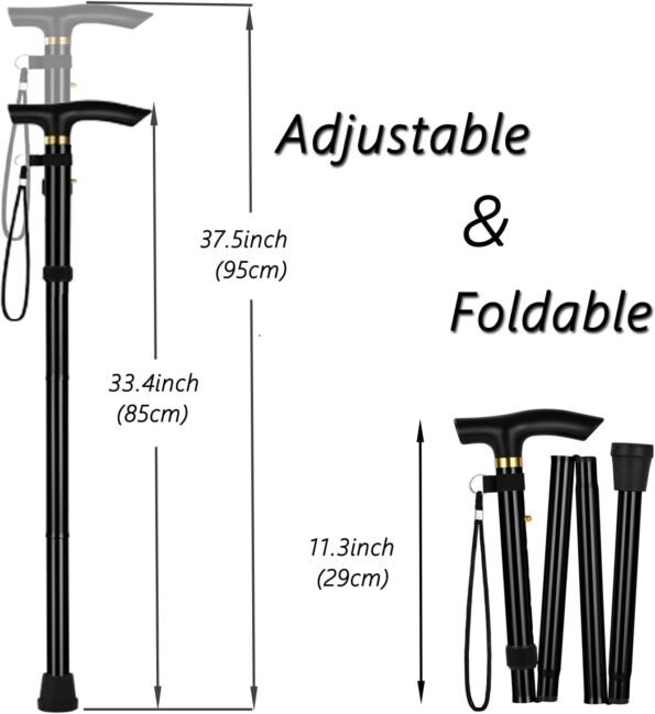 Aluminum Alloy Walking Sticks & Foldable Anti-Slip Hiking Stick – Length Adjustable for Elderly