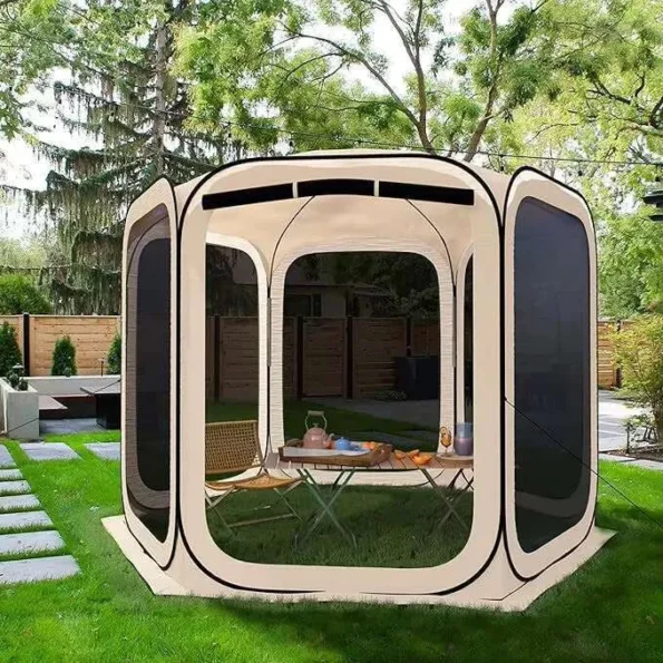 - The tent is designed in a hexagonal shape, which is stable and tidy when stored without being messy.