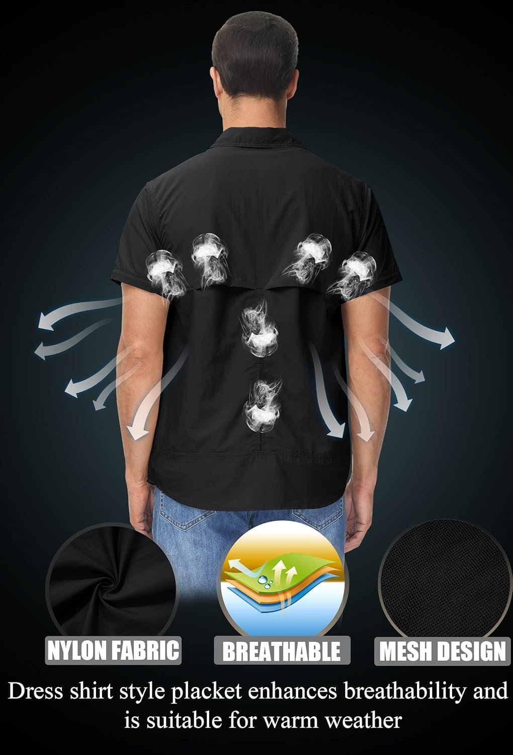 Men’s Breathable Quick Dry Solid Convertible Long Sleeve Shirt Fishing Hiking Safari