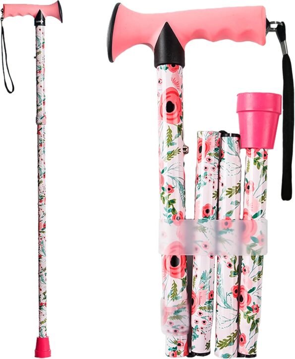 Walking Cane for Men and Women, Foldable Floral Lightweight Adjustable Portable for Folding Canes, Comfortable T-Handle for niors Adults